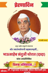 जाणता राजा थोर स्वातंत्र्यसैनिक,जेष्ठ गांधीवादी नेते, सहकार, शिक्षण, समाजकारण, राजकारण, अर्थकारण, बँकिंग, पर्यावरण, जलसिंचन अशा अनेक विविध क्षेत्रातील अभ्यासू नेतृत्व स्व. तीर्थरूप भाऊसाहेब संतूजी थोरात हे माझे वडील. आम्ही सर्वजण त्यांना ‘दादा’ म्हणायचो.