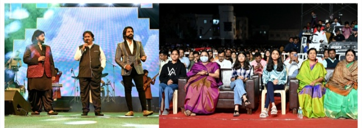 कार्यक्रमाच्या सुरुवातीला डॉ. उत्कर्ष शिंदे यांनी ‘तूच सुखकर्ता, तूच दुखहर्ता’ या गीताने सुरुवात केली. तर महागायक आनंद शिंदे यांनी ‘पार्वतीच्या बाळा, तुझ्या पायात वाळा’ हे गाणे गाताच उपस्थित हजारो नागरिकांनी टाळ्यांचा कडकडाट केला. त्यानंतर मिलिंद शिंदे यांनी गायलेली ‘गेला कान्हा कुण्या गावा’ या गवळणीला प्रेक्षकांनी भरभरून दाद दिली. स्टार गायक उत्कर्ष शिंदे यांनी ‘तू ग दुर्गा, तू भवानी, संसाराची तूच जननी, अंबे कृपा करी’ हे गीत गाताच सर्वत्र एकच जल्लोष झाला.