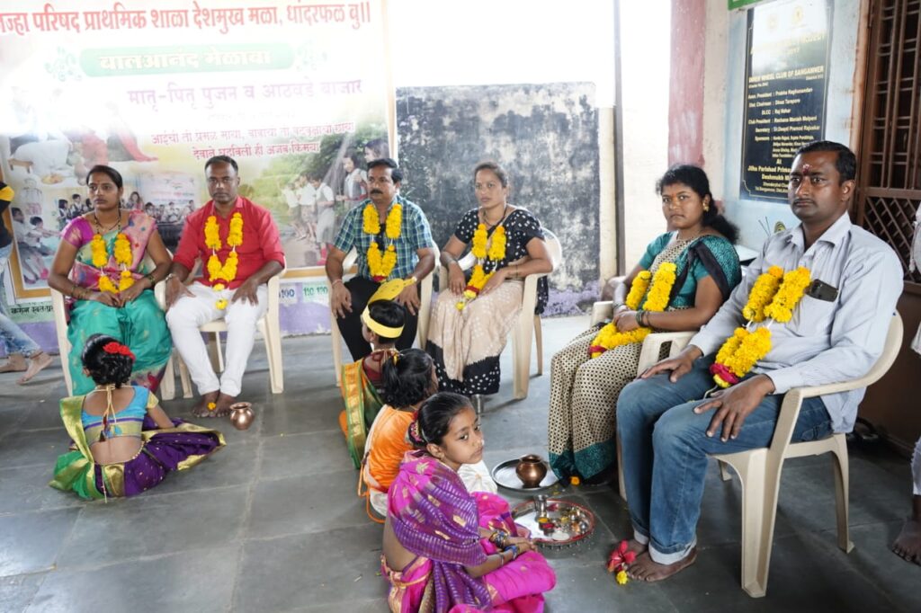 या सोहळ्यात चिमुकल्यांनी आपल्या आई-वडिलांना खुर्चीत बसवून त्यांच्या गळ्यात फुलांचा हार घालून त्यांचे देवा प्रमाणे पूजन केले. आपल्या चिमुकल्यांच्या या कृत्याने आई-वडिलांच्या डोळ्यात आनंदाश्रू तरळले, आणि चिमुकले विद्यार्थीही भावनिक झाले. याच मातृ-पितृ पूजन सोहळ्यामध्ये देशमुख मळा प्राथमिक शाळेने बाल आनंद मेळाव्याचे ही आयोजन केले होते. या आनंद मेळाव्यामध्ये हेच चिमुकले विद्यार्थी व्यावसायिक झाले आणि त्यांनी आपल्या शेतात पिकवलेला भाजीपाला आणि फळे यांची विक्री करून पैसेही कमावले.