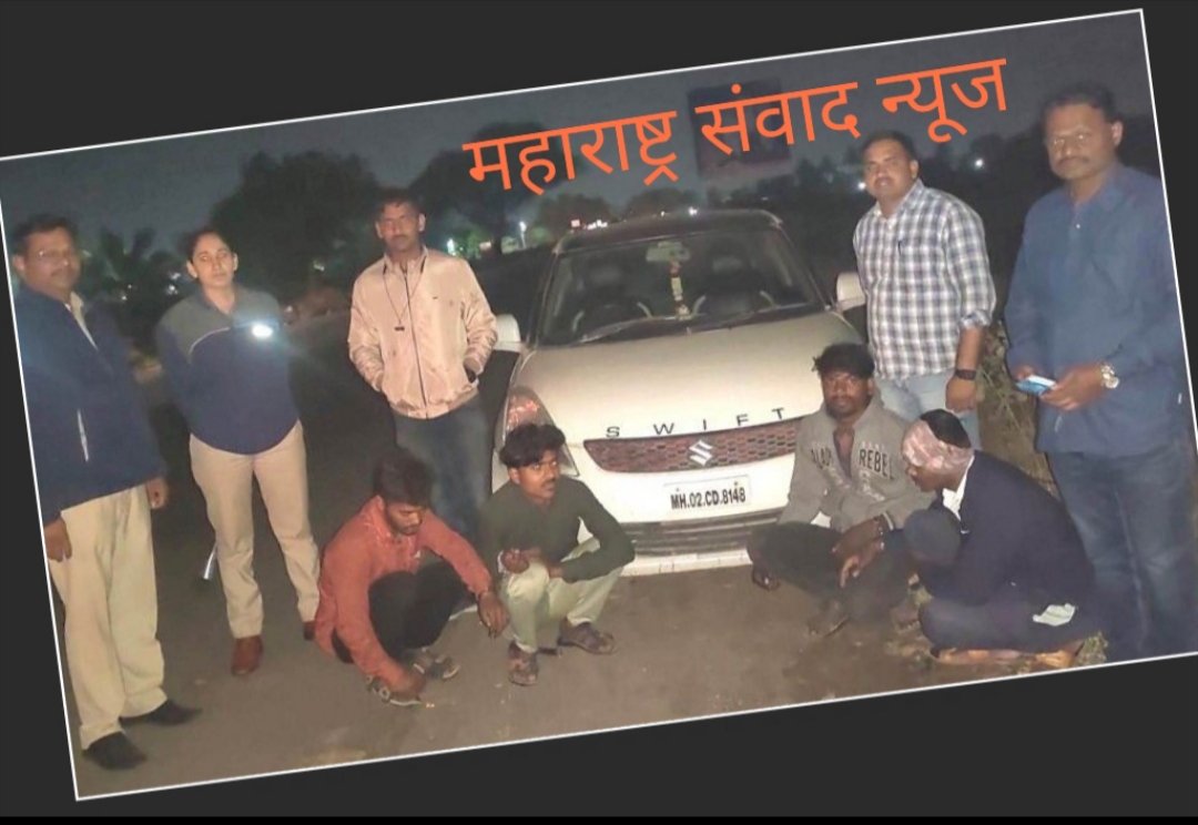 अधिक माहिती अशी, पोलीस उपाधीक्षक संजय सातव, पोलीस निरीक्षक भगवान मथुरे यांच्या आदेशावरून दोन दिवसांपूर्वीच्या एका गुन्ह्याच्या तपासासाठी प्रशिक्षणार्थी पोलीस उपनिरीक्षक फराहनाज पटेल, पोलीस उपाधीक्षकांच्या पथकातील पोलीस कर्मचारी प्रमोद गाडेकर, अण्णासाहेब दातीर शहर पोलीस ठाण्याचे वाहनचालक अजय आठरे, अमृत आढाव, सुभाष बोडखे होमगार्ड थोरात यांचे पथक हिवरगाव पावसा येथे जात असताना दोन वाजण्याच्या सुमारास नाशिक पुणे महामार्गावर संगमनेर खुर्द गावच्या शिवारात सूर्या बार पासून काही अंतरावर पाठीमागून विना क्रमांकाची एक स्विफ्ट कार संशयास्पदरित्या उभी होती. पथकातील कर्मचारी कारजवळ जात असताना कार बाहेर उभा असलेला एक जण पोलिसांना पाहून जवळच्या शेतात पळून गेला. त्यामुळे पोलीस पथकाने स्विफ्ट कारची तपासणी सुरू केली असता त्यामध्ये चौघेजण संशयास्पद स्थितीत बसलेले असल्याचे त्यांना आढळून आले.