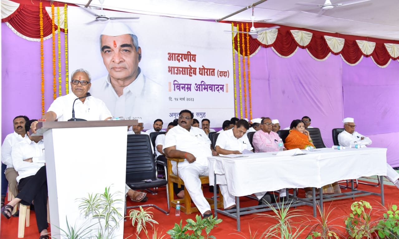 अमृत उद्योग समूहाच्या वतीने सहकार महर्षी थोरात सहकारी साखर कारखान्याच्या कार्यस्थळावरील प्रेरणास्थळी सहकार महर्षी भाऊसाहेब थोरात यांच्या तेराव्या स्मृतिदिनानिमित्त आयोजित अभिवादन कार्यक्रमात नवले बोलत होते. अध्यक्षस्थानी माजी आमदार डॉ. सुधीर तांबे होते. शिक्षक नेते हिरालाल पगडाल कांचनताई थोरात माजी नगराध्यक्ष दुर्गाताई तांबे दूध संघाचे अध्यक्ष रणजीतसिंह देशमुख अरुण कडू उद्योजक राजेश मालपाणी सुरेश थोरात कारखान्याचे कार्यकारी संचालक जगन्नाथ घुगरकर आदी मान्यवर व्यासपीठावर उपस्थित होते.