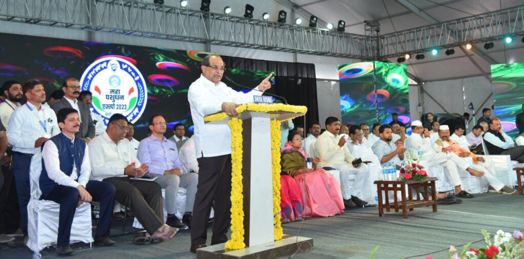 राज्यशासनाच्या पशुसंवर्धन व दुग्धव्यवसाय विकास विभागाच्यावतीने शिर्डी येथे आयोजित तीन दिवसीय ‘महापशुधन एक्सपो २०२३’ चे पशुसंवर्धन मंत्री विखे-पाटील यांच्या हस्ते उद्घाटन झाले. त्यावेळी ते बोलत होते. कार्यक्रमाच्या अध्यक्षस्थानी कृषीमंत्री अब्दुल सत्तार होते.