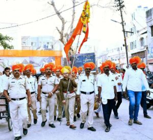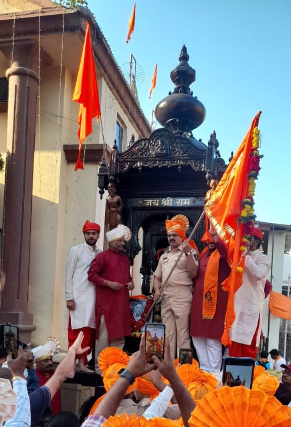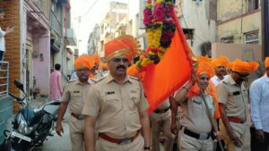 ऐतिहासिक असलेल्या संगमनेरच्या हनुमान रथोत्सव मिरवणूक गेल्या वर्षी एका वेगळ्याच वादात सापडल्यानंतर यावर्षी मात्र पोलीस प्रशासनाचा मानाचा ध्वज वाजत गाजत आणत तो रथावर फडकाविण्याचा मान शहर पोलीस ठाण्याचे पोलीस निरीक्षक भगवान मथुरे यांनी कायम ठेवला. गतवर्षी निर्माण झालेल्या वादामुळे हा ध्वज आणण्याचा मान पोलीस निरीक्षकांऐवजी इतिहासात पहिल्यांदाच महिला पोलीस उपनिरीक्षकाला मिळाला होता.