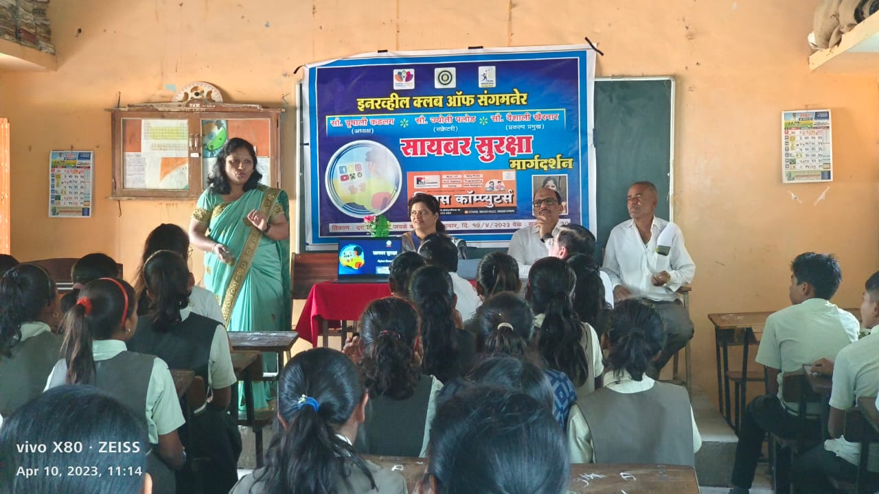 दत्त विद्यालय, जवळे कडलग येथे ‘सायबर क्राइम’ या विषयावर विद्यार्थ्यांसाठी आयोजित मार्गदर्शन शिबिरात खैरनार बोलत होत्या. अध्यक्षस्थानी इनरव्हील क्लब ऑफ संगमनेरच्या प्रेसिडेंट वृषाली कडलग, व्यासपीठावर मुख्याध्यापक सूर्यकांत सुर्वे , स्थानिक स्कूल कमिटी सदस्य भास्करराव शेळके उपस्थित होते.