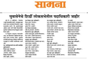 युवा सेनेचे नवे पदाधिकारी पुढीलप्रमाणे –