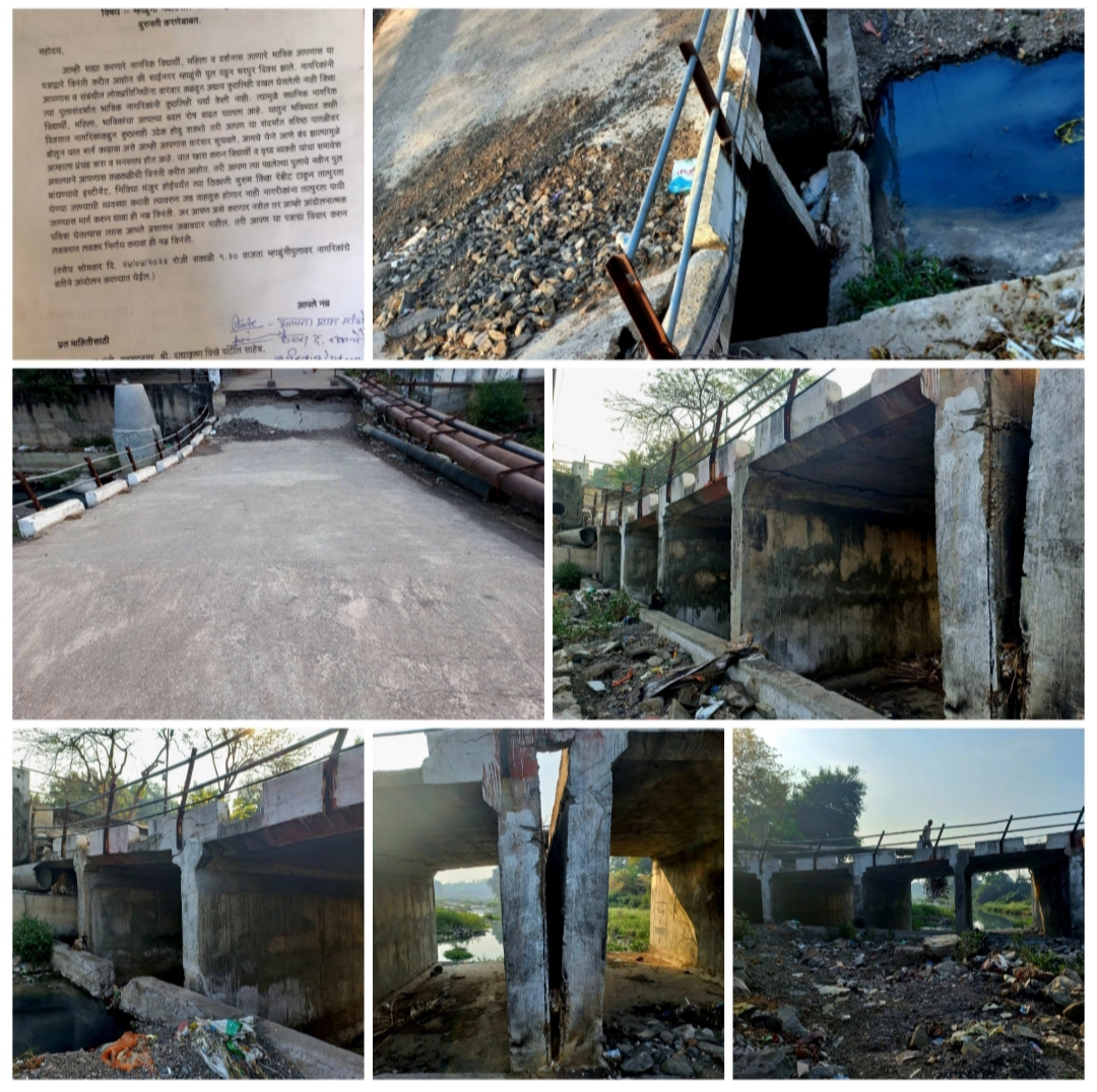 सोमवारी (२४ एप्रिल) म्हाळुंगी नदीवरील पडलेल्या पुलाच्या दुरुस्ती करता आंदोलन करण्यात येणार असून तशा आशयाचे निवेदन तब्बल दीडशे लोकांनी प्रशासकीय अधिकारी मुख्याधिकाऱ्यांना दिले आहे.