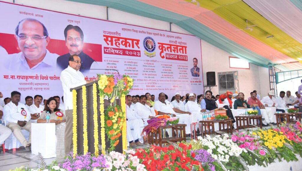 शिक्षक बॅकेंने शंभर वर्षाच्या केलेल्या यशस्वी वाटचालीबद्दल पदाधिका-यांचे अभिनंदन करुन, मंत्री विखे पाटील म्हणाले, हा प्रवास खुप मोठा असला तरी, अनेक आव्हानांना सामोरे जात झाला आहे. शिक्षण आणि सहकार याची योग्य सांगड घालून या बॅंकेने केलेली प्रगती निश्चितच जिल्ह्याचा नावलौकीक मोठा करणारी आहे. सहकार चळवळीने सर्वांना बरोबर घेवून जाण्याचा संदेश दिला.