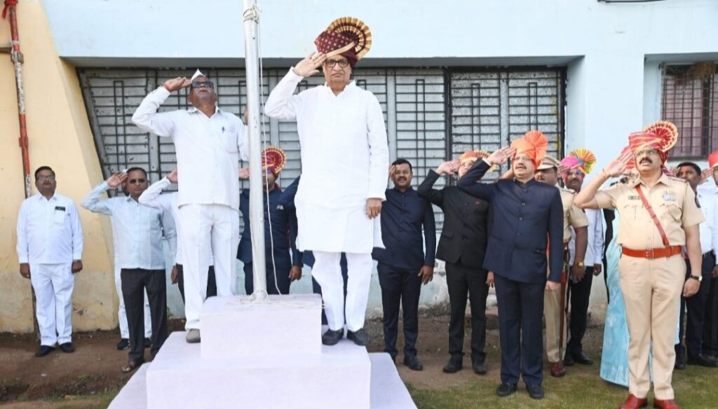 महाराष्ट्र दिनानिमित्त थोरात यांच्या हस्ते संगमनेरमध्ये शासकीय ध्वजारोहण करण्यात आले. यावेळी प्रांताधिकारी डॉ. शशिकांत मंगरुळे, नायब तहसीलदार गणेश तळेकर, पोलीस निरीक्षक भगवान मथुरे यांच्यासह सर्व विभागांचे प्रशासकीय अधिकारी उपस्थित होते.