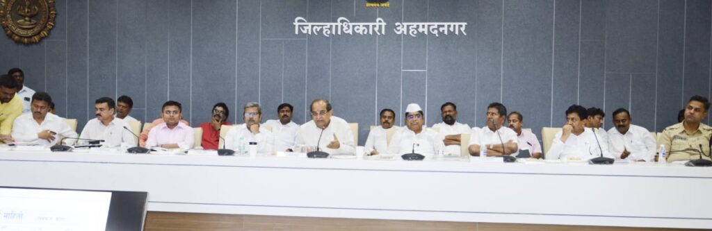विखे पाटील यांच्या उपस्थितीत रविवारी जिल्हाधिकारी कार्यालयात जिल्हास्तरीय खरीप हंगाम पूर्व तयारी आढावा बैठकीचे आयोजन करण्यात आले होते. यावेळी शिर्डीचे खासदार सदाशिव लोखंडे, श्रीरामपूरचे आमदार लहू कानडे, जिल्हा बँकेचे अध्यक्ष शिवाजीराव कर्डिले, जिल्हाधिकारी सिद्धाराम सालीमठ, जिल्हा परिषदेचे मुख्य कार्यकारी अधिकारी आशिष येरेकर, पोलीस अधीक्षक राकेश ओला, अतिरिक्त मुख्य कार्यकारी अधिकारी संभाजी लांगोरे, विभागीय कृषी सहसंचालक रफिक नाईकवाडे, आत्माचे प्रकल्प संचालक विकास नलगे, कृषी उपसंचालक राजाराम गायकवाड, जिल्हा अधीक्षक कृषी अधिकारी सुधाकर बोराळे आदी उपस्थित होते.