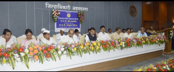 जिल्हाधिकारी कार्यालयाच्या सभागृहात विविध योजनांच्या आढावा बैठकीचे आयोजन करण्यात आले होते. त्याप्रसंगी उपमुख्यमंत्री फडणवीस बोलत होते. बैठकीस राज्याचे महसूल, पशुसंवर्धन, दुग्धविकास मंत्री तथा जिल्ह्याचे पालकमंत्री राधाकृष्ण विखे पाटील, खासदार सदाशिव लोखंडे, खासदार सुजय विखे-पाटील, आमदार बबनराव पाचपुते, आमदार प्रा. राम शिंदे, आमदार मोनिकाताई राजळे, आमदार प्राजक्त तनपुरे, जिल्हा मध्यवर्ती बँकेचे अध्यक्ष शिवाजीराव कर्डिले, विभागीय आयुक्त राधाकृष्ण गमे, जिल्हाधिकारी सिद्धाराम सालीमठ, पोलीस अधीक्षक राकेश ओला, जिल्हा परिषदेचे मुख्य कार्यकारी अधिकारी आशिष येरेकर आदी उपस्थित होते.