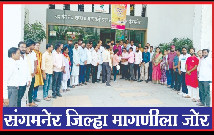शिंदे-फडणवीस सरकारने राज्याचे महसूल तथा जिल्ह्याचे पालकमंत्री राधाकृष्ण विखे पाटील यांच्या मागणीवरून शिर्डीमध्ये मंजूर केलेले अतिरिक्त जिल्हाधिकारी कार्यालय जिल्हा विभाजनासाठी कळीचा मुद्दा ठरले आहे. त्यामुळे जिल्हा विभाजनाचा प्रश्न पुन्हा एकदा ऐरणीवर आला आहे. याच पार्श्वभूमीवर संगमनेर जिल्ह्याच्या मागणीसाठी जिल्हा कृती समितीच्यावतीने मंगळवारी प्रांताधिकार्यांना सविस्तर निवेदन देण्यात आले.